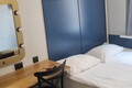 В номере: двуспальная кровать, стол, стул, зеркало, гардеробная секция, тв, холодильник.