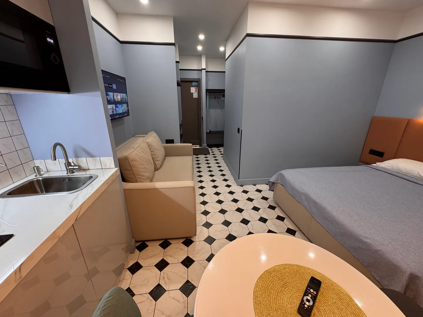 Апартаменты соответствуют описанию. Есть все необходимое. Удобное бесконтактное заселение. Большая душевая. Всё продумано до мелочей! Спасибо за комфортное пребывание!