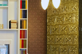 В детской расположены две кроватки, стеллаж с книгами и игрушками, а также игровой комплекс.