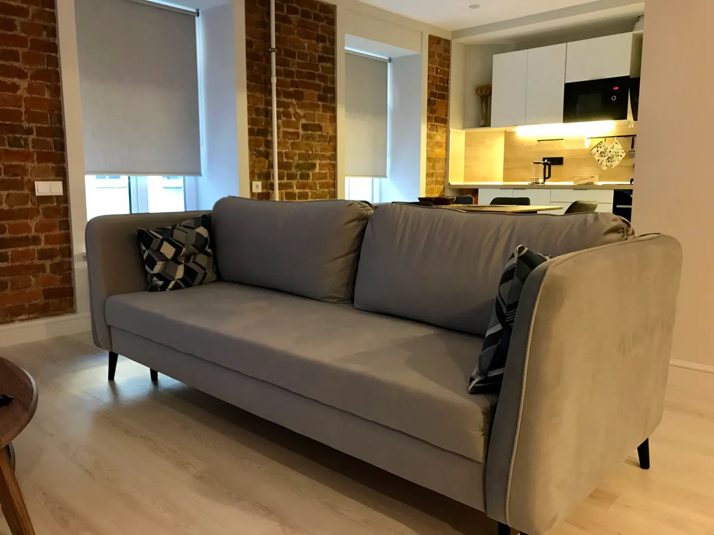 Квартира с новым ремонтом в стиле лофт в центре Санкт-Петербурга в доме Орловых - памятнике архитектуры 1878 года постройки. Дом расположен в одном из самых красивых мест центра города на Пушкинской улице напротив пушкинского сквера.