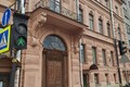 Монументальный подъезд в торжественном вестибюле с широкой парадной лестницей, обрамленной перилами из кованного железа.