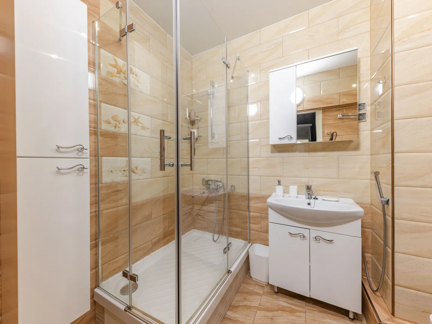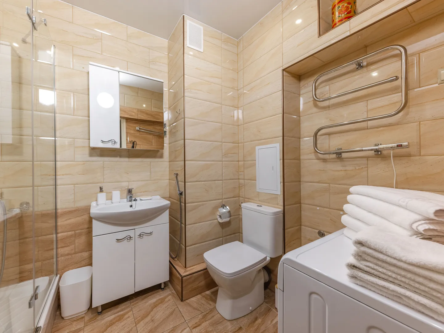 Наталья, спасибо за такой подробный отзыв! 🌿 Очень приятно, что вы отметили соответствие квартиры фото и даже такие детали, как живые цветы 💐 — мы стараемся создавать уютную атмосферу. Рады, что вам понравилась отделка и удобства. Спасибо за важное замечание про пол — обязательно проверим и подумаем, как сделать выход из душа более безопасным. Будем рады видеть вас снова! 🙌