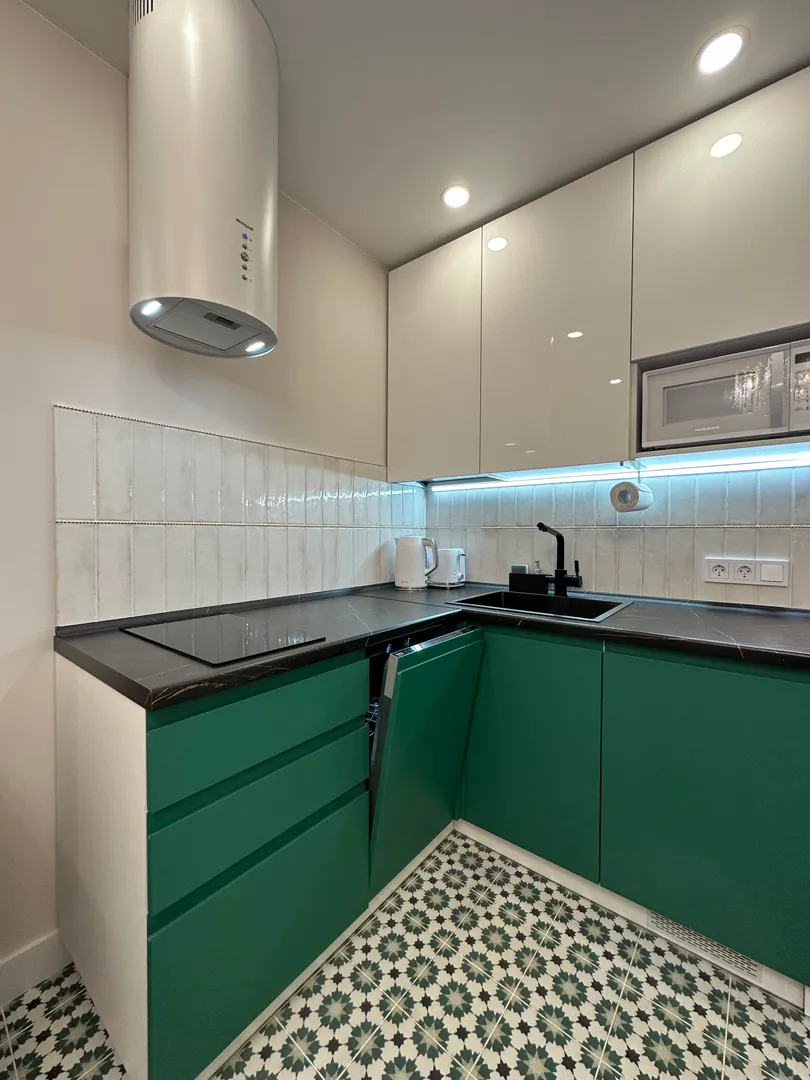1-комнатная квартира дизайнерский евроремонт и отдельная кухня.