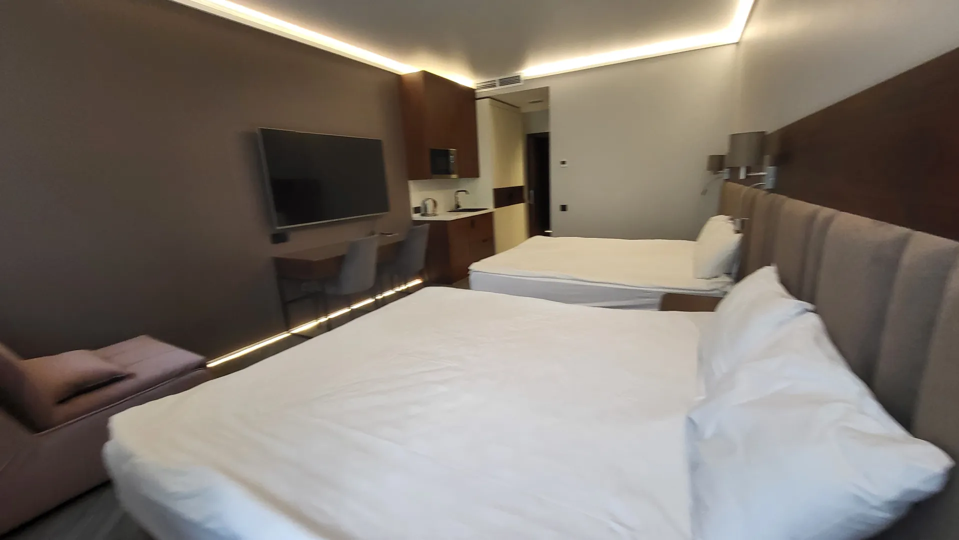 В ванной не понравился кран( я понимаю, что хочется быть современным, но кран заедает и залипает) который, то и дело заедал. В коридоре шпарит кондиционер что не совсем хорошо когда наступает вечер. Лично, мне с семьей не хватило вешалок для одежды.