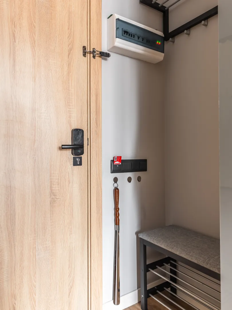 - оснащенная комната всем самым необходимым для комфортного проживания, ТВ, умная колонка «Салют», рабочая поверхность, компактные кресла, система хранения вещей, сейф, утюг, сушилка, гладильная доска,