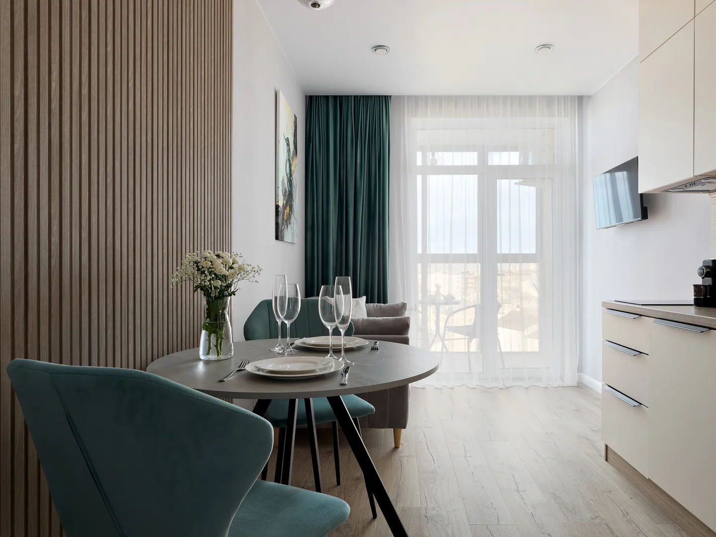 Обеденная зона на 4 персоны — для ужинов, утреннего кофе и работы за ноутбуком
