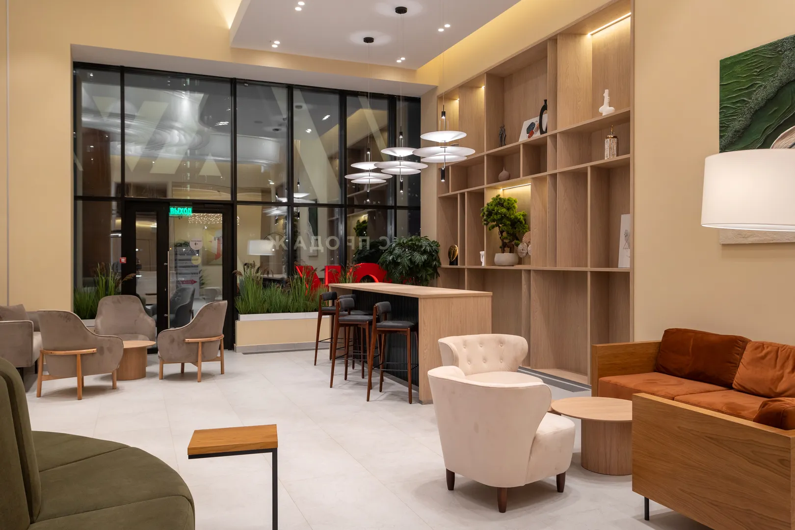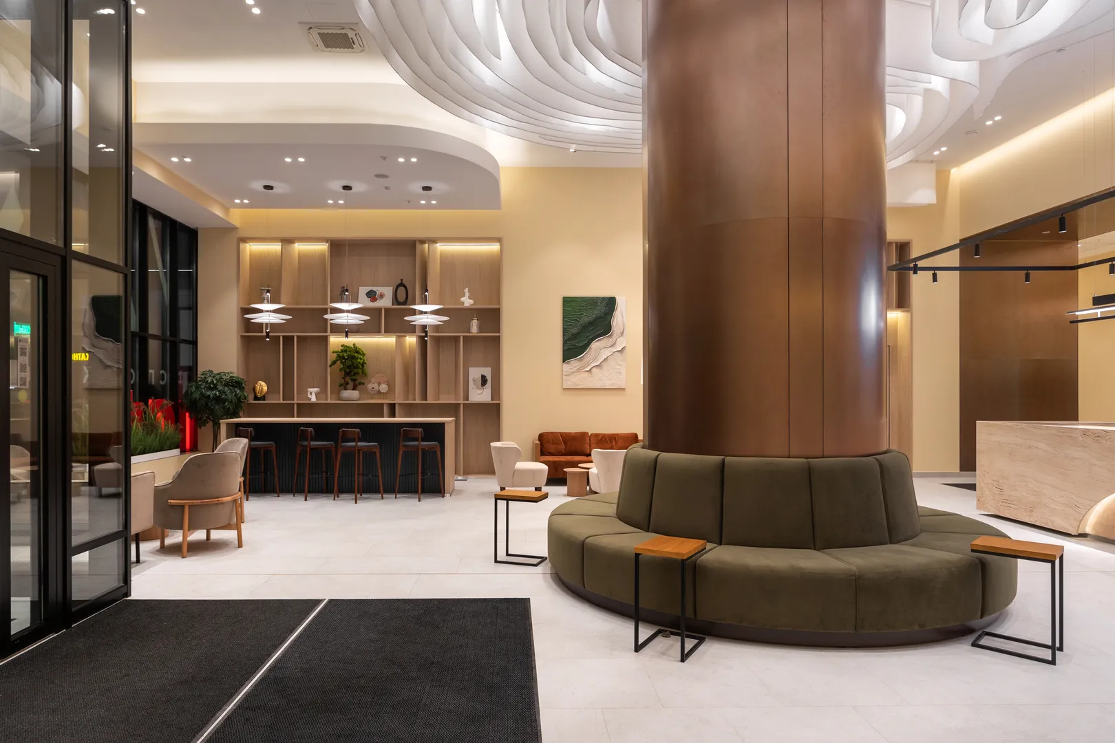 Бесплатная парковка на территории комплекса, уютные места общего пользования, стильный холл для встречи гостей,