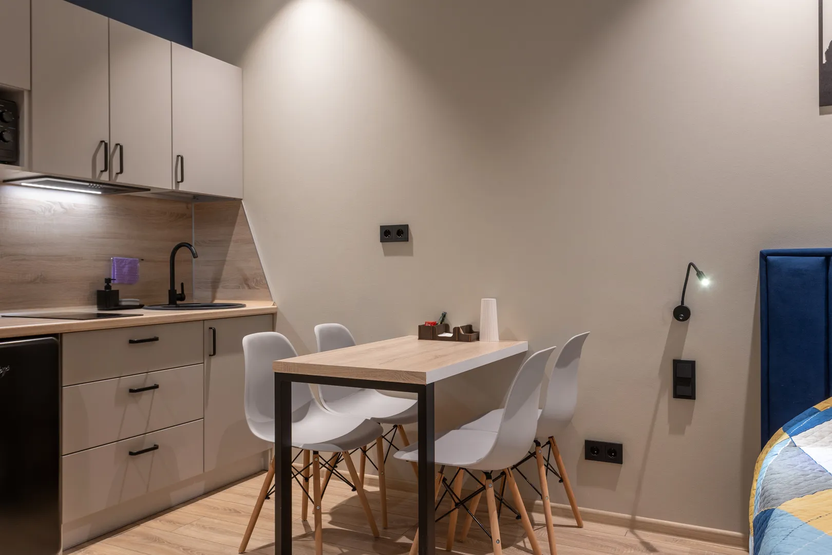 Студия дизайнерский евроремонт и кухонная зона.