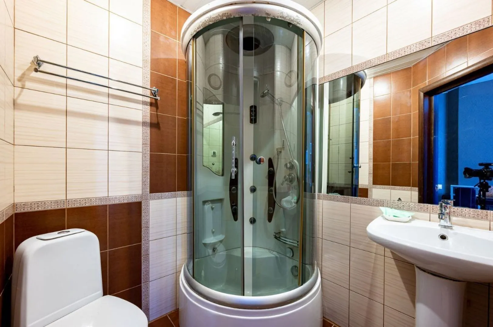 Душевая кабина, туалет, раковина.