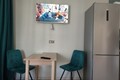 На кухне-гостиной установлена встроенная стильная кухонная мебель со встроенной техникой: варочная панель, духовой шкаф, вытяжка, удобный раскладной 2-спальный диван.