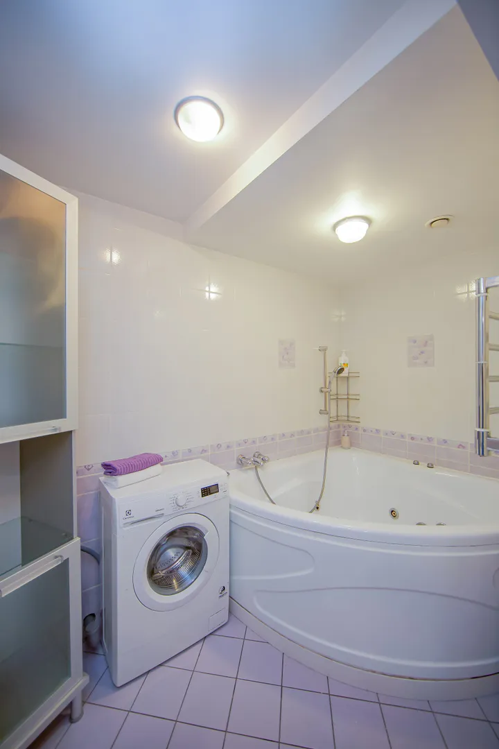 Квартира большая, два санузла. Расположение удобное. Хороший вай фай. Чисто уютно. Нам понравилось. Ванная большая. Кровати удобные