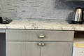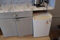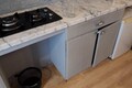Оборудованная кухонная зона: холодильник, варочная панель, свч, чайник, набор посуды, чай