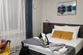 В апартаментах есть телевизор 43', кофеварка, посудомоечная и стиральная машины, встроенный фильтр для питьевой воды, кровать king size, бесплатный wi-fi, гладильная доска и утюг, фен, пылесос. На кухне есть свч-печь, холодильник с морозильной камерой, духовка, всё необходимое для сервировки и приготовления блюд, плита. Также есть удобный круглый обеденный стол со стульями. У кровати есть прикроватное освещение и розетки, а около телевизора — консольный рабочий стол. Предоставляются постельное бельё и полотенца.