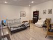В квартире полноценный обеденный стол с креслами, высокоскоростной Wi-Fi, телевизор с диагональю 42 см, стерео система Sony и небольшая домашняя библиотека. Компактная кухня укомплектована всем необходимым: стеклокерамическая варочная поверхность, микроволновая печь Sharp, новый холодильник с морозильной камерой, стиральная машина, электрический чайник и тостер.