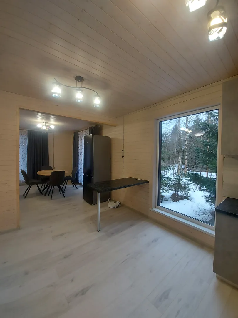 Удобное расположение - недалеко от города. Сам домик чистый, просторный, стильный. Вид со всех окон на лес. На улице есть столик со стульями. Хорошо провели время, спасибо хозяевам)