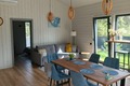 Коттедж имеет просторную кухню-гостиную с панорамными окнами, две спальни (с большой кроватью), раскладные диваны в гостиной, сауну. Панорамные окна во всех комнатах создают неповторимую атмосферу. Кухня оборудована необходимой бытовой техникой и посудой.