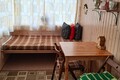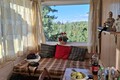 При входе-застекленная панорамная веранда-кухня с очень красивым пейзажем. Тут есть, раковина, холодильник, плита, посуда и уютное место отдыха у панорамного окна.