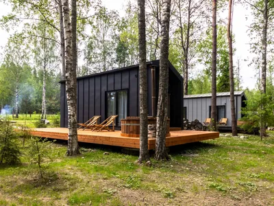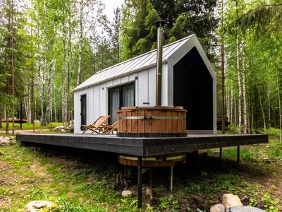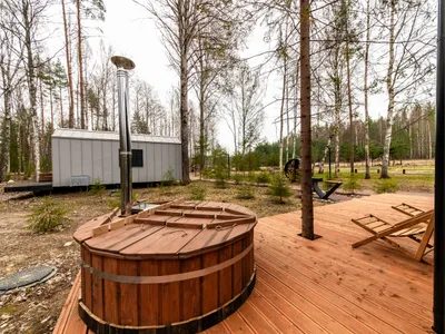 Уютный домик в лесу на двоих с купелью фурако и мангалом