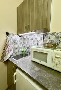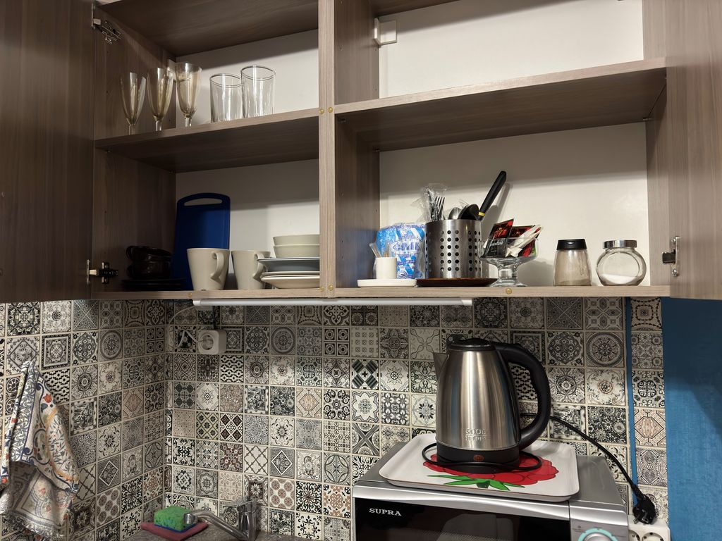 Вас ждет уютная студия с собственной ванной комнатой и мини-кухней, где есть все необходимое для комфортного проживания.