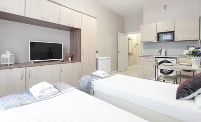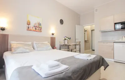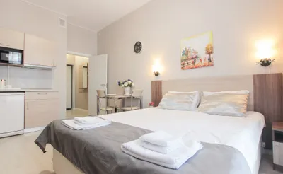 Мы предоставляем нашим гостям полностью оборудованные номера комфорт-класса. В номерах есть вся необходимая бытовая техника, кухонные принадлежности, посуда, постельное бельё и полотенца.…