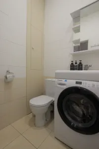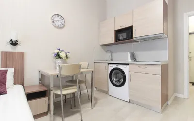 удобное расположение. рядом есть всё необходимое. кафе, магазины и т.д. удобно добираться из/в аэропорт. в номере есть всё необходимое (плита, свч, стиральная машина, фен, фильтр для воды, чайник, холодильник)