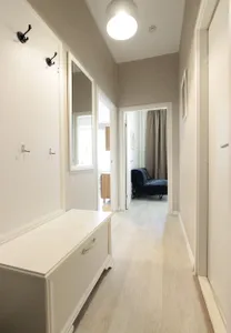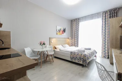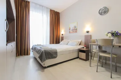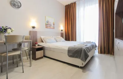 Интерьер апартаментов выполнен в современном стиле, они обустроены мебелью с комфортом для приятного отдыха гостей. В числе удобств имеется Wi-Fi, ЖК-телевизор, собственная ванная комната. Одним из преимуществ является наличие панорамного балкона с видом на город.