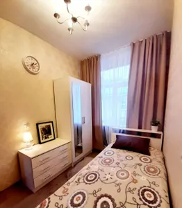Отличный вариант проживания в Петербурге! 😍 1. Шикарное местоположение возле станции метро Маяковская и Площадь Восстания, в пешей доступности от Московского вокзала. 2. Совсем рядом вкусная столовая, так что кухней в квартире пользоваться особо времени, сил, а главное- смысла- абсолютно нет, ну если только чаек попить) Чайник и фильтр для воды как раз имеются) 3. Очень удобный матрас, спала, как младенец, конечно, роль еще играет и обилие положительных эмоций в течение дня, но постель и правда очень шикарная! 4. Душ и туалет тоже очень хорошие, очередей и толчеи не было. 5. Фото прилагаю, все мои личные, как видите, все совпадает с фотографиями на сайте, розеток в комнате было достаточно, в том числе и для обувной сушилки (в набор туриста наравне с зонтом в Питере, берите с собой непременно!)