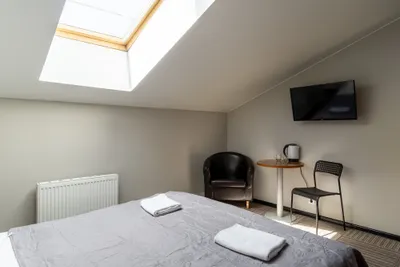 Отличное расположение, в самом центре исторических достопримечательностей. Заселили раньше. Чисто. Тихо. Есть мини-холодильник в номере. По запросу предоставляют чайник. Есть общая уютная кухня на 4 этаже, где есть чай, сахар и все необходимое. Рядом столовая #1 и знаменитая пышечная.