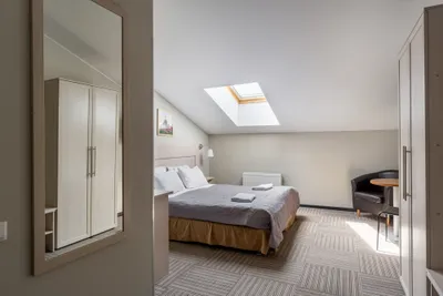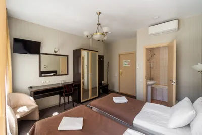 Мы предлагаем нашим гостям уютные и комфортабельные комнаты с одной двуспальной или двумя раздельными кроватями. Интерьеры, оформленные в теплых пастельных тонах, создают атмосферу спокойствия, а современное оборудование отвечает всем стандартам комфорта. Из окон открывается вид на тихий и уютный дворик. На всей территории доступен Wi-Fi.