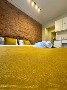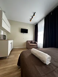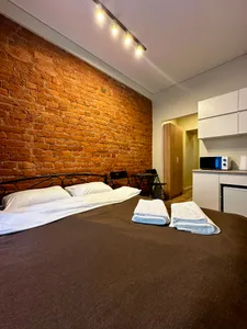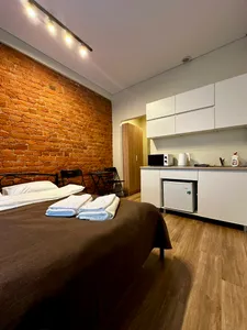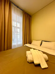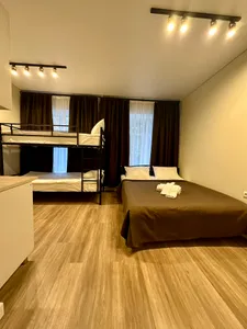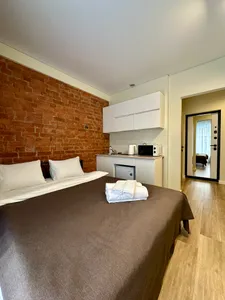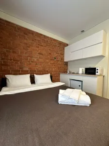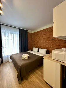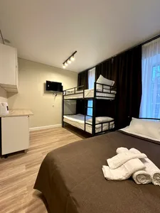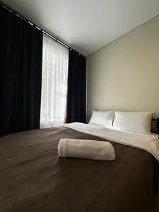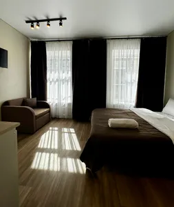 Комната была чистая, уютная. Приехали с мужем, чтоб навестить брата. Рядом все есть магазины, закусочные, аптеки, а до остановки пешком дойти примерно 200-300м