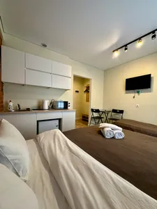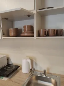 Часть номеров обустроены мебелью и техникой для самостоятельного приготовления еды. Поблизости есть кафе и рестораны, где можно вкусно покушать, отдохнуть и приятно провести время.