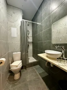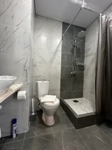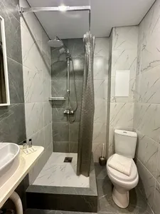 Отсутствие шкафов создает неудобства для размещения вещей. Нет туалетной бумаги. Душ оставляет желать лучшего: вода плохо уходит, создавая ощущение стоячей воды, что затрудняет принятие душа.