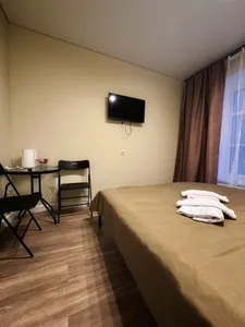 Комната оказалась точно такой же, как на фотографиях в объявлении. Однако условия оказались довольно скромными. Подойдет лишь для того, чтобы просто переночевать вдвоем, особенно если у вас невысокие требования к комфорту. ✅ Положительные моменты: - Просторная кровать позволяет удобно разместиться двум людям. - Окружающая атмосфера спокойствия способствует отдыху. Несмотря на недостатки, отдохнуть вполне возможно, если рассматривать гостиницу исключительно как временное укрытие для сна. Для тех, кому важен высокий уровень комфорта и удобства, этот вариант вряд ли подойдет.