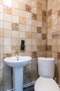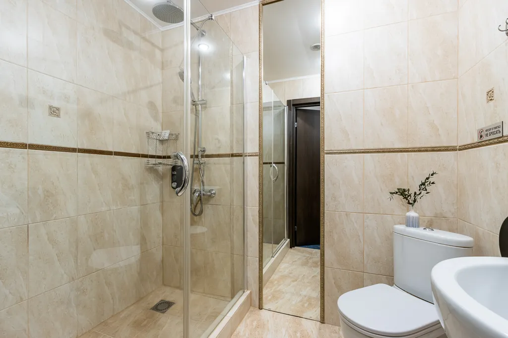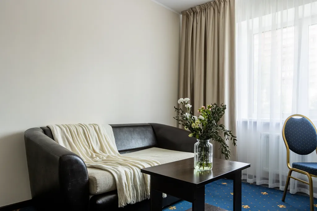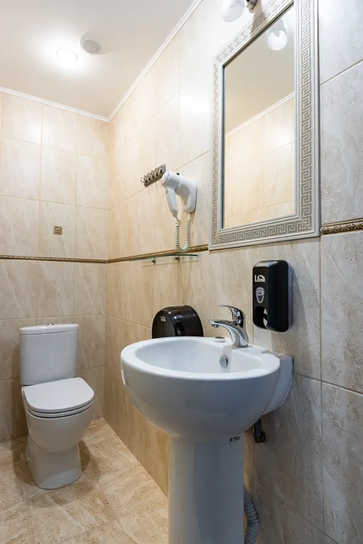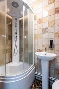 Дали номер, который полностью не готов. Вынужден был дозваниваться до их администраторов. Админ не смог оперативно помочь. Админ, Елена постаралась решить проблему. Дали номер с заменой. На фото также в номере есть проблемы, вода не отрегулирована, идёт постоянно кипяток. Слив плохо работает. Кровь на занавесках. Номер который дали на замену, не отвечал своим требованиям - пятна на ковре, кровь на шторах, вода постоянно была кипятком, терморегулятор не отрегулирован и есть проблемы канализации, ухода воды.
