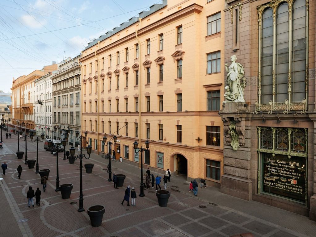 Отель расположен на втором этаже исторического здания на углу невского проспекта - главной исторической артерии города, и тихой малой садовой улицы.