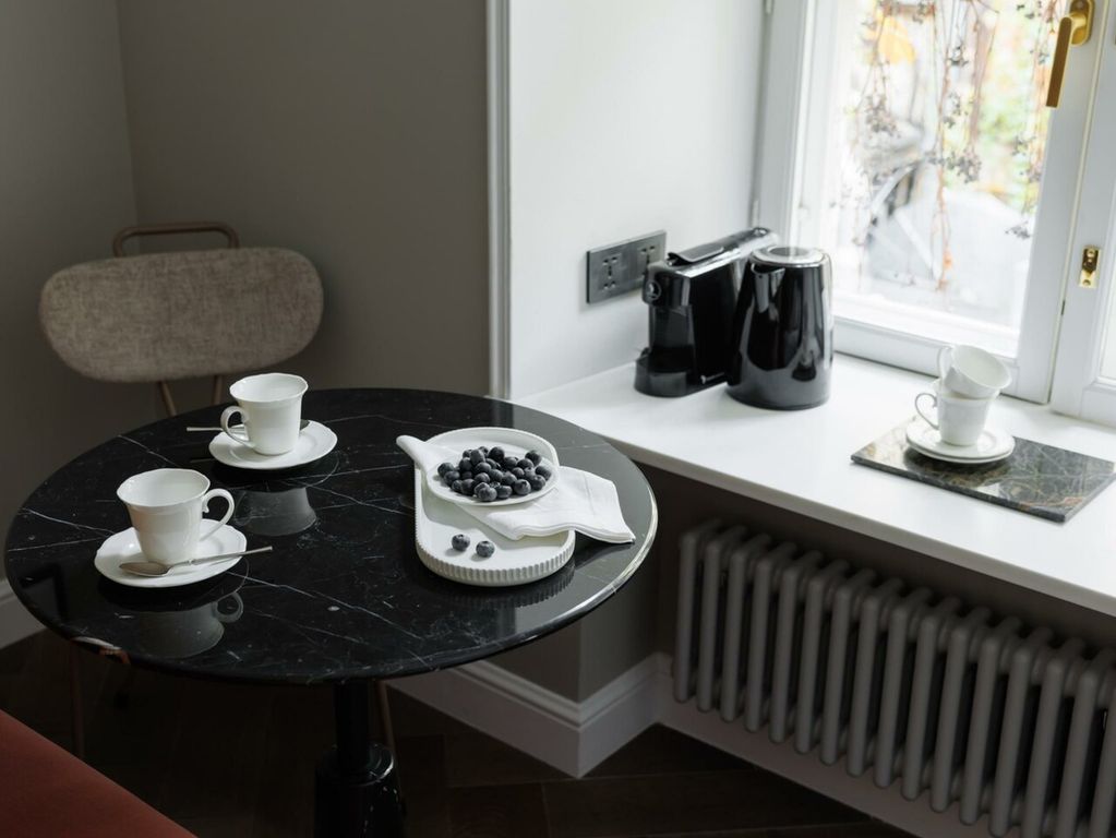 Отреставрированные исторические окна соседствуют с современными санузлами, а премиальные матрасы и система «умный дом» обеспечивают комфортный отдых в интерьерах, хранящих дух прошлого.