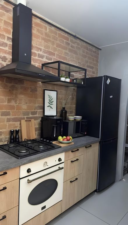 Современная кухня, полностью оснащенная всем необходимым для приготовления пищи