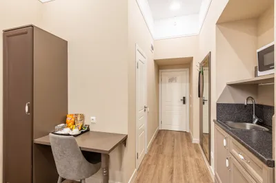Нам все очень понравилось, нас заселили раньше положенного времени, заезд с 14 часов, нам разрешили в 12, так как мы срочно должны были переодеться и ехать в Мариинский театр. Номер небольшой, но все что нужно есть, все чистое. На этаже есть утюг и гладильная доска. Также мини кухня на которой можно что то разогреть и сделать кофе. В номере есть чайник, чай, кружки. Очень удобно расположен, 5 минут и Московский вокзал. Рядом магазин Дикси круглосуточный, а также с 06 утра работает кафешка, где можно вкусно позавтракать. Всем очень рекомендую этот отель.