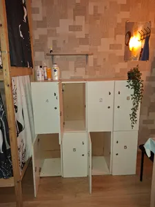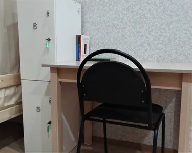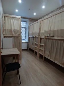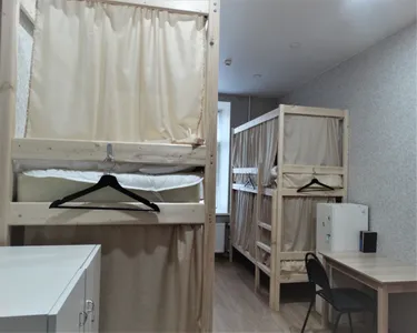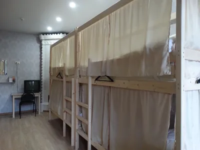 В других номерах, которые с двухъярусными кроватями - на каждой кровати имеются шторки, своя розетка, своя полка и свой индивидуальный шкафчик на ключике.