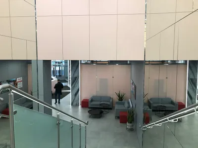 В коридоре стоял неприятный запах, предполагаю, что из-за влажной уборки ковров, так как помещение не проветривается.