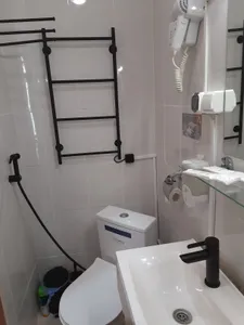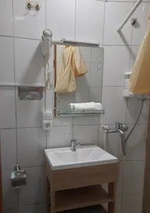 Гостям выдается по 3 полотенца на каждого (банное, ножное, лицевое). Наше постельное бельё из страйп-сатина. Ежедневно проводится текущая уборка номеров и, по необходимости, замена полотенец. Номера комплектуются расходниками: шампунь, мыло,