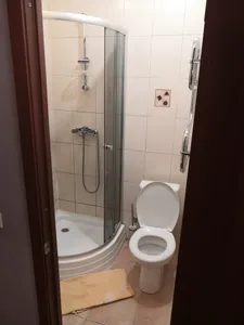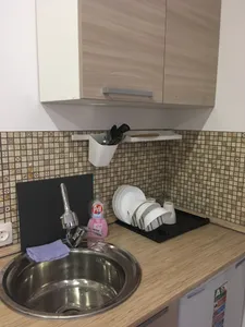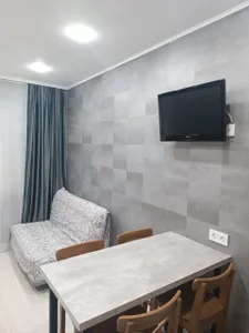 Всё в целом хорошо, кроме расположения двери в ванную комнату рядом с туалетом, ну крайне неудобно коленями прикасаться двери😀, с учётом моего небольшого роста в 164 см. Отсутствие стола тоже минус, всё-таки для 3-хместного, попить чай утром за столом было бы неплохо, столешница высокая, а барные стулья не прилагаются, в общем выкручивались как могли🙃.