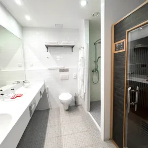 Отличный отель со своим рестораном и прекрасной кухней. На ресепшене приветливые и доброжелательные девушки, которые помогли быстро заселиться, хотелось бы отметить Ларису и Диану, спасибо им огромное!!! Номер очень хороший, кровать большая, матрас удобный, спалось великолепно. В номере есть холодильник, телевизор, термос-чайник, все необходимые принадлежности. В душевой комнате тоже всё подготовлено, халатики, фен и косметические средства. Транспорт любой в шаговой доступности, магазины, и до центра прокатиться на автобусе или на трамвае очень удобно и быстро! Рекомендую! Благодарю за отдых!