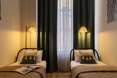 К номеру не прилагается отдельная ванная комната, обратите внимание, будующие постояльцы. К сожалению, по объявлению это не очевидно на первый взгляд. В нем написано, что ванная общая, только если "провалиться" во вкладку "все удобства в номере". На пять комнат одного душа маловато - ждала своей очереди до трех часов ночи по итогу. Также в номере были потерности на стенах и много пыли вдоль стен на полу.