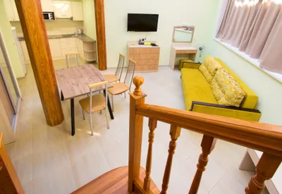 В отеле отсутствует вентиляция, очень душно везде, в мансардном номере пока не открыли все, которые смогли открыть, окна и не включили кондиционер. Были в середине сентября, что же летом в этом номере. Москитные сетки на окнах поломаны, одно мансардное окно не открывается - сломана ручка. Кровать и подушки крайне неудобные, не смогли выспаться, после ночи на такой кровати с подушками у меня и мужа болят все кости. Дверь как будто кто-то поджигал. В ванной комнате на мозаика в душе черный грибок.