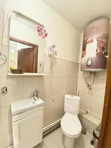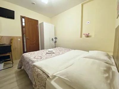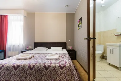 Ванна и кровать находятся в одном помещении и удобно перемещаться от одного до другого. Кровать достаточно удобная, беспружинный матрас хорошо держит форму.