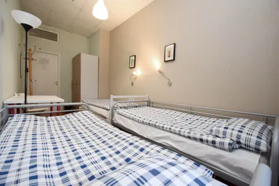 Предварительно позвонили, что не приехала в своё время, так как рейс задержали на 10 часов. Всё чисто в номере. Дали шкафчик с ключом. Досталась кровать на 2м ярусе, но это и хорошо. Есть розетка, лампочка. Постельное чистое, одеяло и подушка хорошего качества. Чисто везде и спокойно было.