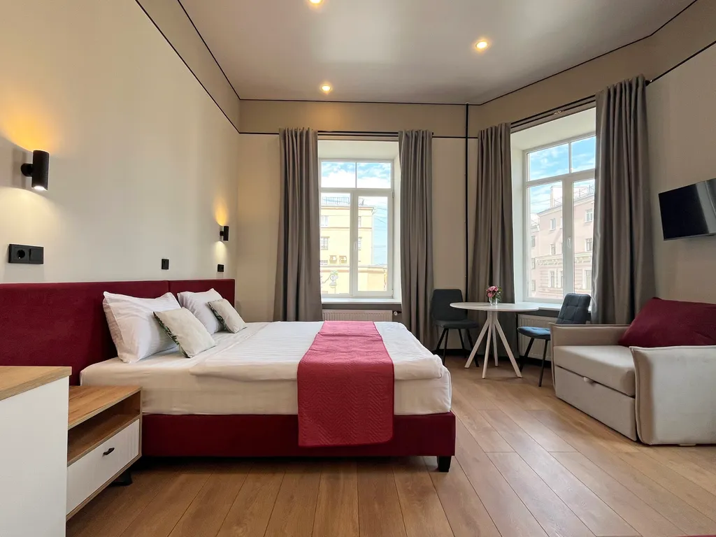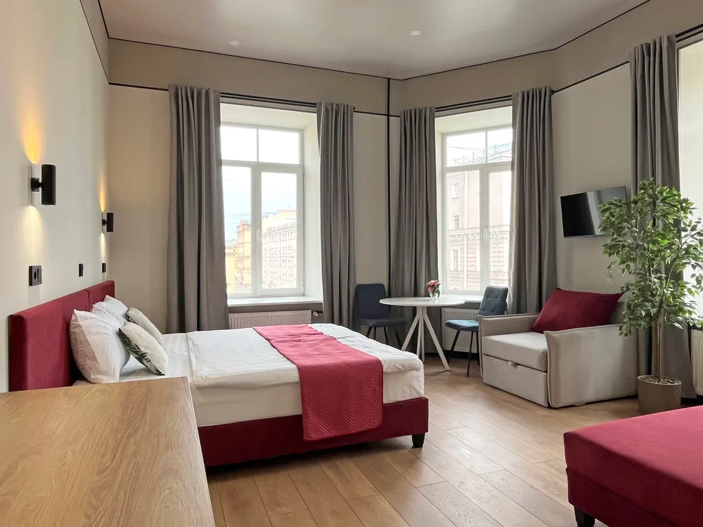 Окна выходят на невский из-за этого шумно. Когда устанешь, этого не замечаешь.