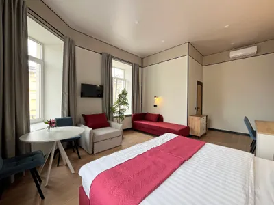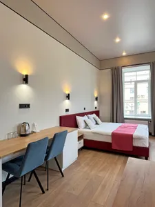Очень удобное место расположения отеля, рядом метро, жд вокзал, куча магазинов, кафе, ресторанов. Комната уютная, есть всё необходимое, бельё белоснежные, аж хрустящие, удобный санузел с душем, феном и всеми принадлежности. На этаже кофе автомат, гладильная доска, автомат со снеками. Очень довольны своим выбором именно этого отеля. На ресепшене очень приятные сотрудницы. Хочу сказать огромное спасибо всем причастны! В следующий раз только сюда!
