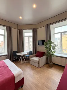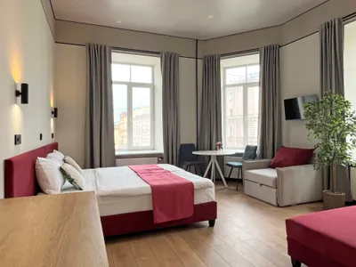 Расположение, относительно московского жд вокзала и ст. Метро площадь восстания близко, вежливый, доброжелательный персонал, уборка в номере и смена полотенец ежедневное, из минусов: отсутствие стиральной машинки, место для курения на улице (для курящих) с 3-го этажа бегать, лишний раз задумаетешься (а может это и плюс), завтрак однообразный, но вполне сытный, большего на мой взгляд не нужно. А в общем все хорошо, номер чистый, постель удобная (для тех кто любит мягкие матрасы) большое спасибо за гостеприимство!